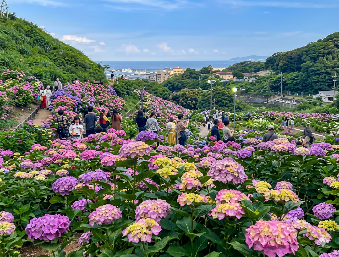 ・とあるあじさいの名所(約5万株のあじさい見物「あじさい祭り開催中!!」)